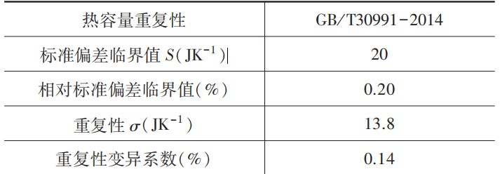 表1 熱容量重復(fù)性標(biāo)準(zhǔn)要求與推算