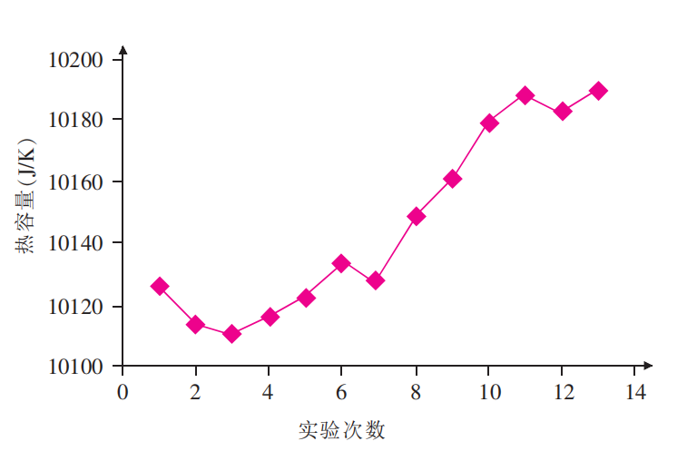 圖1 熱容量隨實(shí)驗(yàn)次數(shù)增加變化趨勢(shì)圖