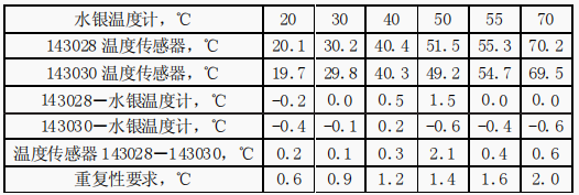 (2)143028比水銀溫度計(jì)偏高,除50℃點(diǎn)外,其余差值小于重復(fù)性要求。