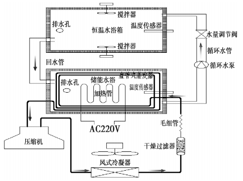 整套裝置包括有制冷系統(tǒng)、電加熱系統(tǒng)、冷熱水循環(huán)系統(tǒng)、智能數(shù)字溫度間接控制系統(tǒng)等組成。并要滿足境溫度以及試件溫度對(duì)水浴箱溫差造成的影響,而且要實(shí)現(xiàn)全自動(dòng)對(duì)循環(huán)水泵控制,保持水浴箱溫度恒定設(shè)定溫度范圍內(nèi)。